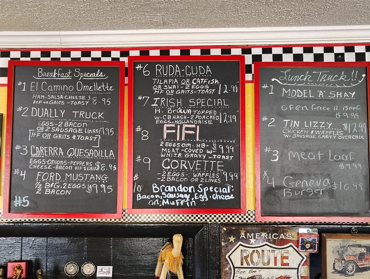 Three eggs (any style) with bacon, and smoked sausage. Served with toast & choice of home fries or grits.