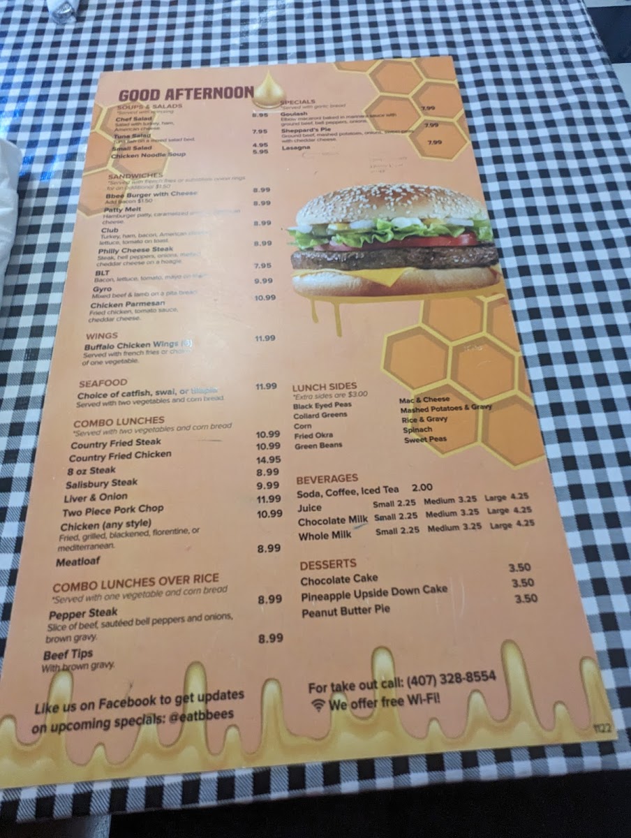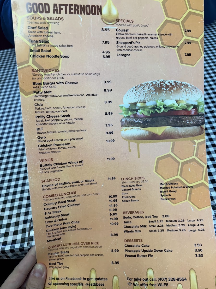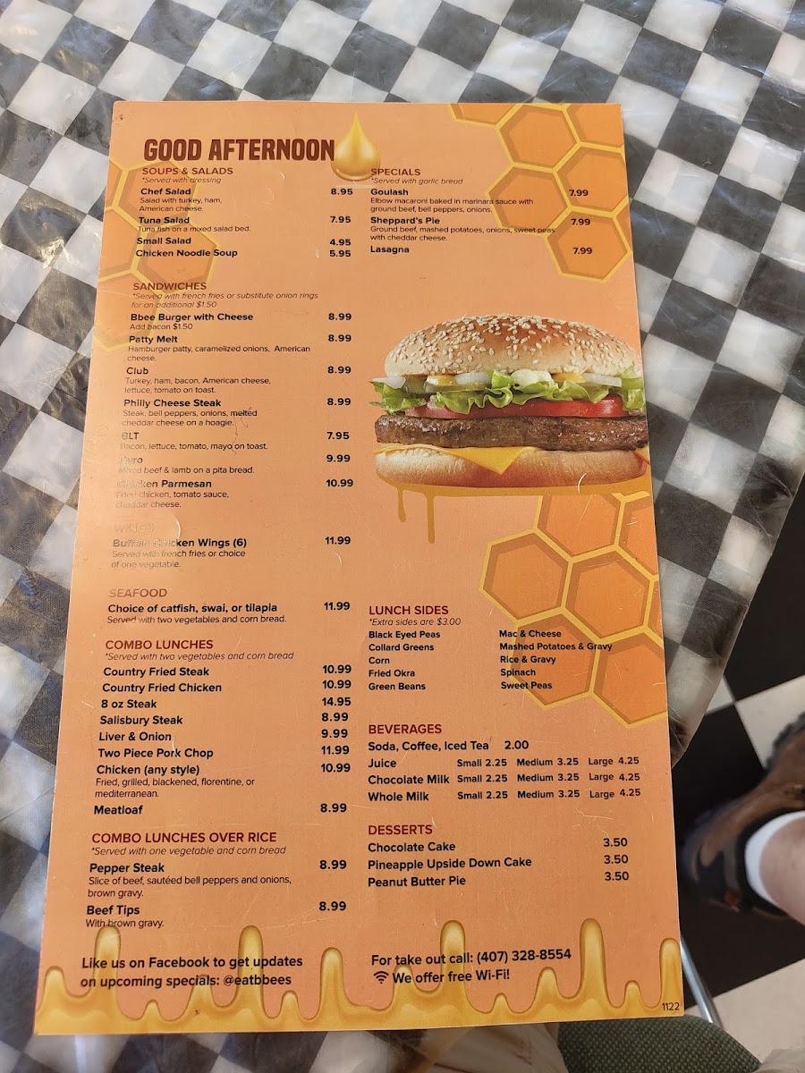 Slices of beef, sautéed with bell peppers and onions, and brown gravy over rice. Served with corn bread and one side.
